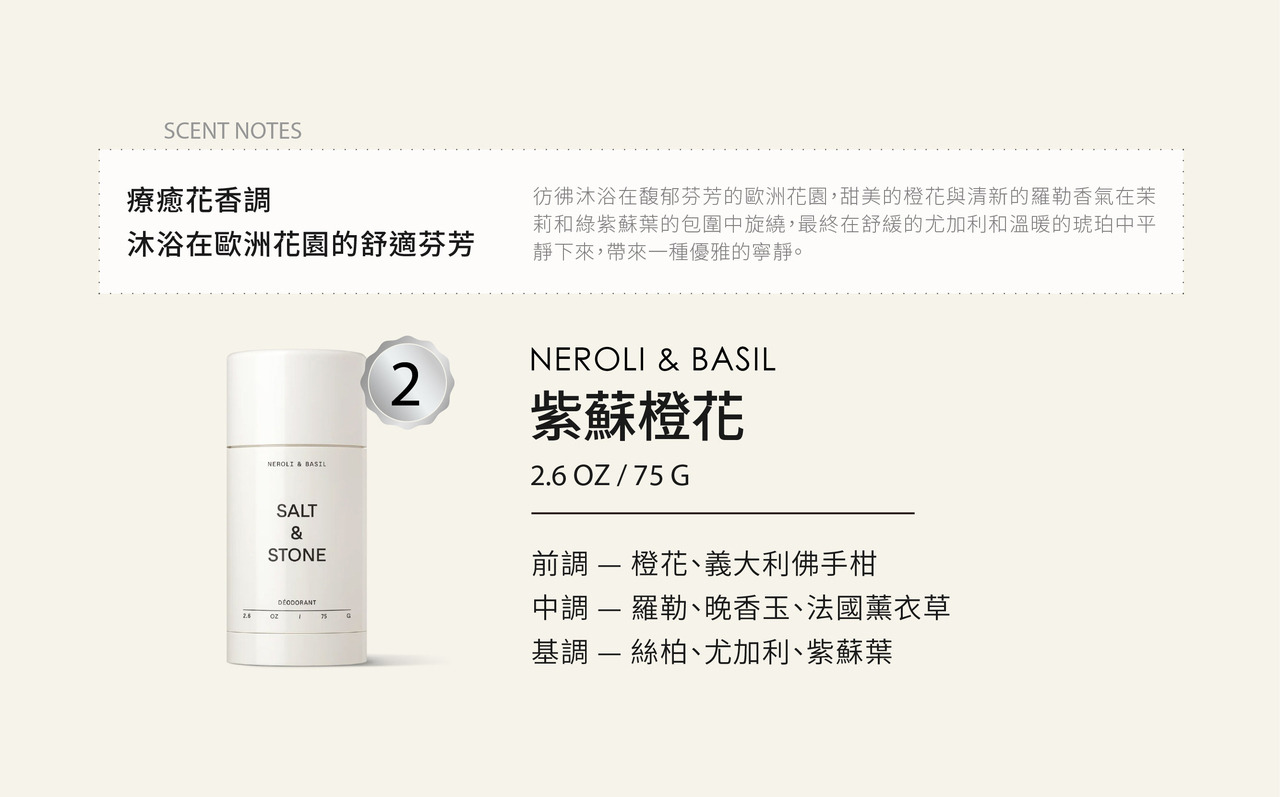 ▪配方不含鋁鹽、並使用植萃香料